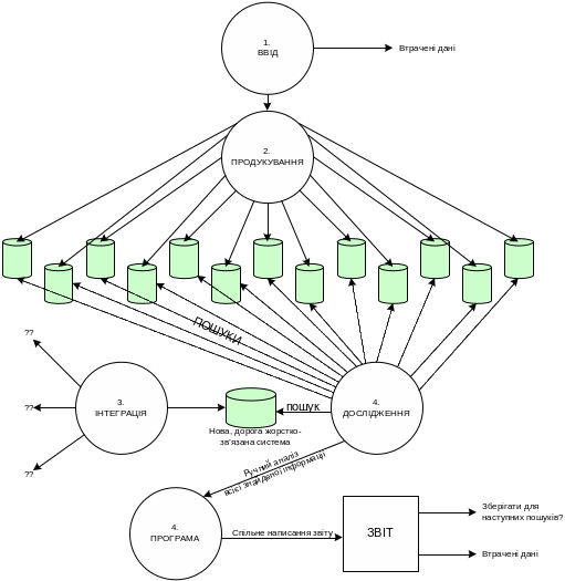 На другому рівні відбувається продукування, на якому дані записуються в базу даних, цифрові файли чи пошукову машину. Основною проблемою є те, що група чи проект вводять одну і ту саму інформацію по-різному. Як результат отримують багато жорстко-зв’язаних систем.