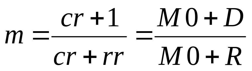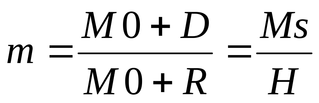 де М0 – маса готівки в обороті поза банками, D – маса грошей в депозитах комерційних банків, R – сума резервів комерційних банків.