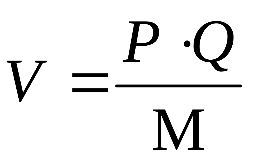 Q – фізичний обсяг товарів та послуг, що реалізовані в даному періоді, M – середня маса грошей, що перебуває в обороті за даний період.