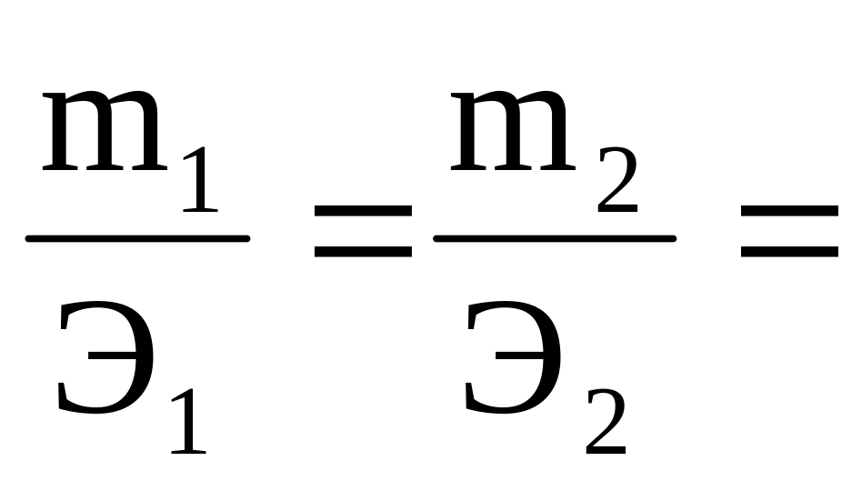 С учетом закона Авогадро определить массы водорода и кислорода по формуле: