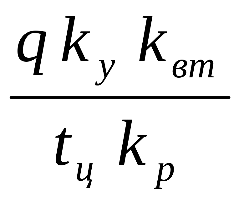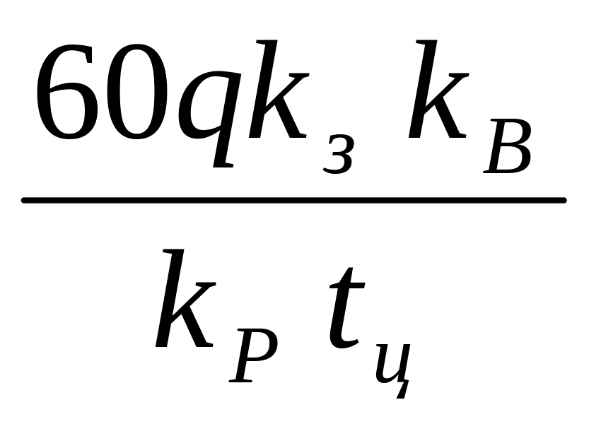 де q — місткість ковша скрепера, м3; kз — коефіцієнт заповнення ковша; kв — коефіцієнт використання машини за певний час; kp — коефіцієнт розпушення ґрунту, tn — середня тривалість одного циклу, хв.