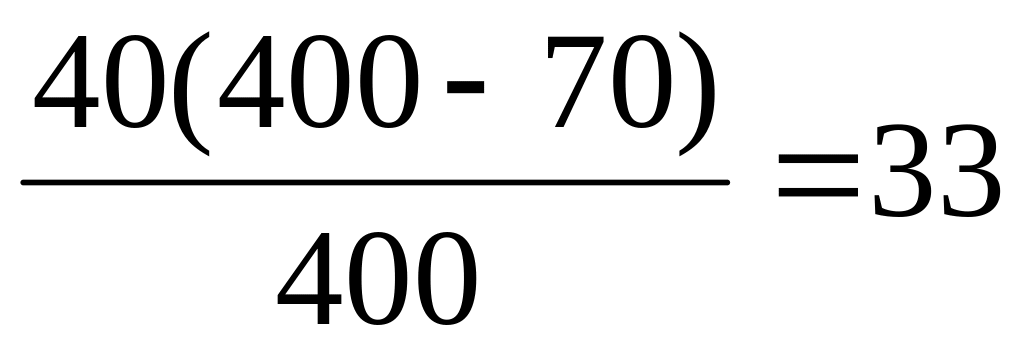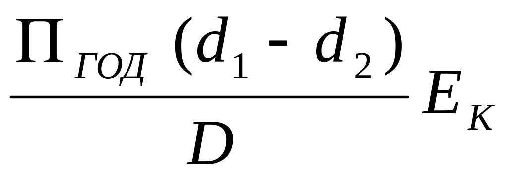 де Пгод — погодинна продуктивність грохота; d2 , d1 — граничні розміри матеріалу, що відокремлюється (для наведеного прикладу d2 – d1 = 70 - 40 = 30 мм, див. рис. 3.1); D — максимальний розмір кусків гірської маси; Ек - ефективність грохочення (для колосникових грохотів Ек = 0,6...0,7).