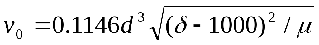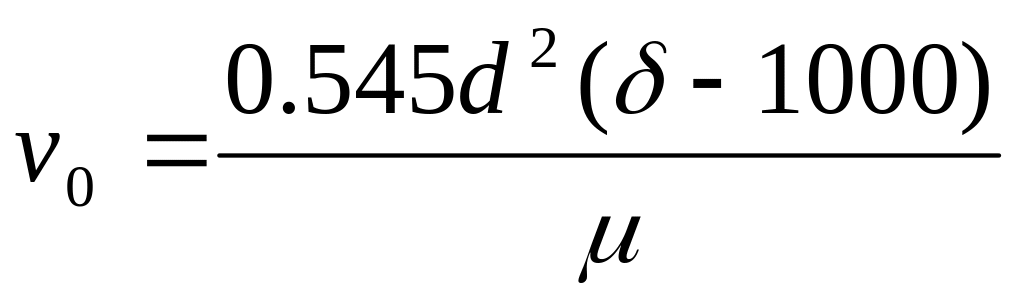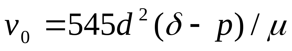 де d — діаметр частинки, м; —щільність частинки,кг/м3; р — густина рідини, кг/м3; g - прискорення вільного падіння, м/с2.