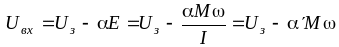 При питании якорной цепи от неуправляемого источника тока (I=const) электропривод, как отмечалось, обладает свойством управляемого по цепи возбуждения “источника момента”, т.е. имеет в разомкнутой структуре вертикальные механические характеристики. Это обстоятельство очень удобно для построения замкнутых структур: исключение действия ЭДС вращения позволяет просто формировать любые характеристики посредством использования соответствующих обратных связей. Покажем это на простых примерах. В схеме на рис. 3.23,а отрицательная обратная по скорости включена на возбудитель, имеющий характеристику с ограничением; напомним, что установленная мощность возбудителя много меньше мощности двигателя. В предположении, что характеристики Ф(Uв) и Uв(Uвх) на рабочих участках линейны, имеем: