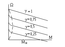 Механические характеристики электродвигателя постоянного тока при питании якоря от транзисторного преобразователя, работающего в несимметричном режиме, представлены на рис.10.28.Наибольшая протяженность режима прерывистых токов имеет место при = 0,5. При