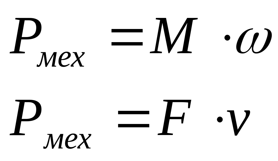 Механические мощности двигателя или рабочего органа для вращательного или поступательного движения определяются: