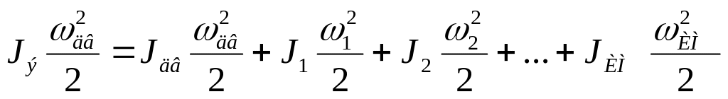 Для упрощения рассмотрения процессов изменения частоты вращения и момента на валу двигателя необходимо момент инерции системы привести к одной и той же оси вращения. При этом следует исходить из равенства запасов кинетической энергии в действительной и эквивалентных схемах.