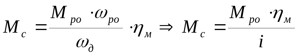 Если известен к.п.д. передачи, то статическая мощность на валу двигателя определяется: