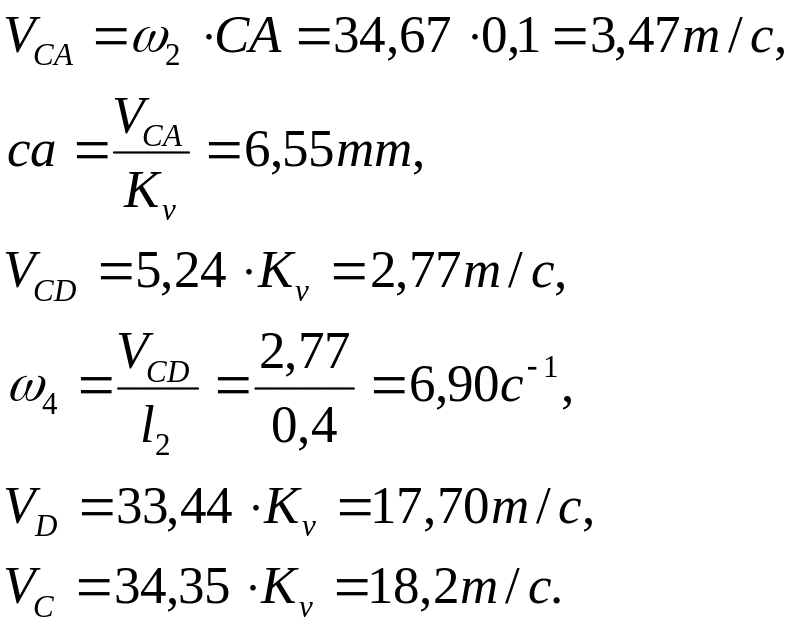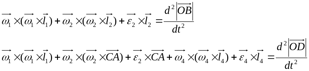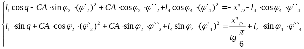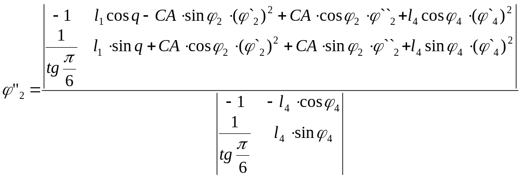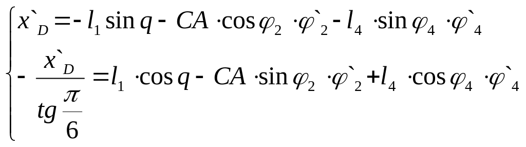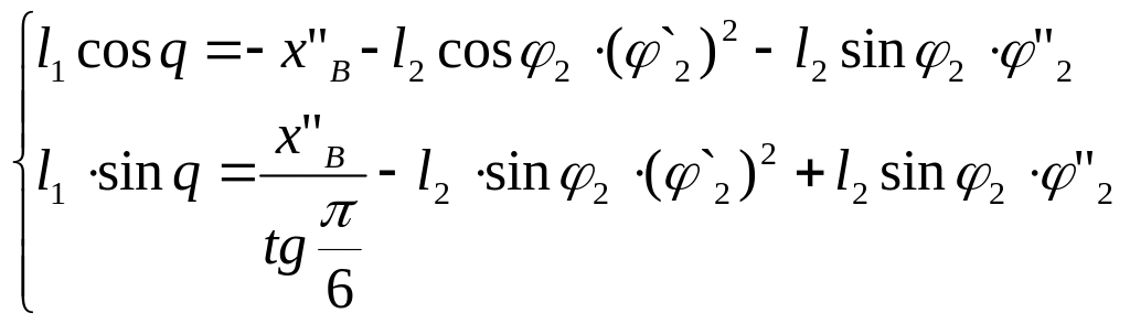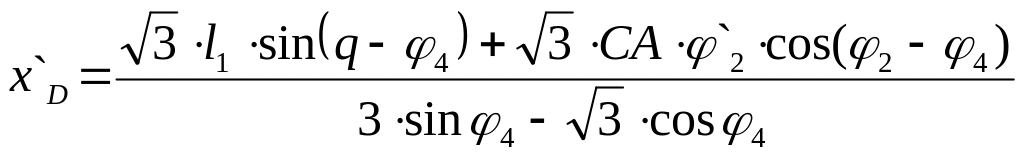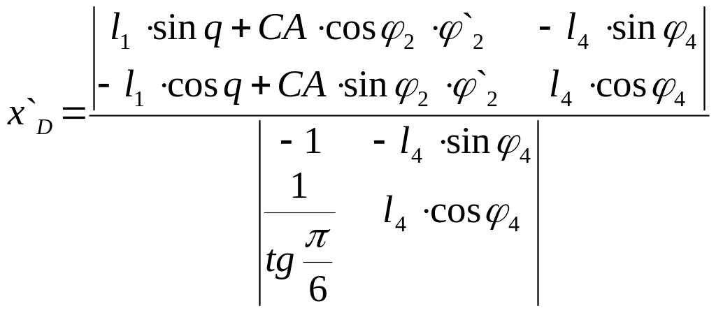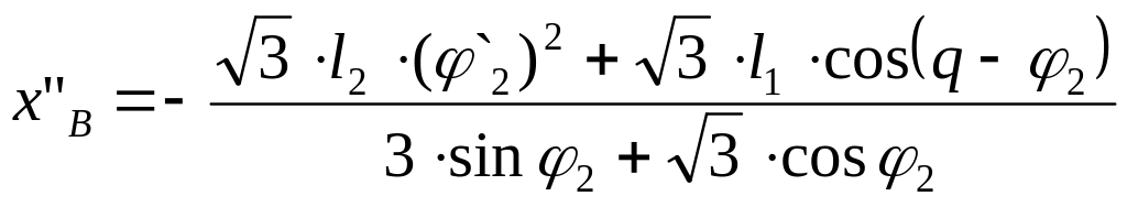 Путём дифференцируя уравнения дважды по q уравнения геометрического анализа, находятся аналоги скоростей и ускорений данного механизма.