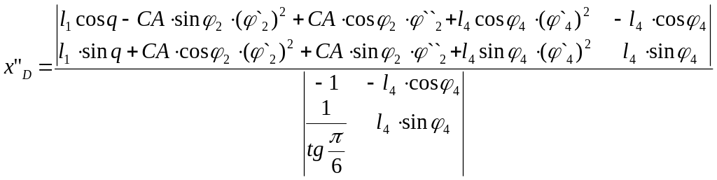 Значение аналога ускорения точки D и аналога углового ускорения звена 4 при входной координате q=30°: