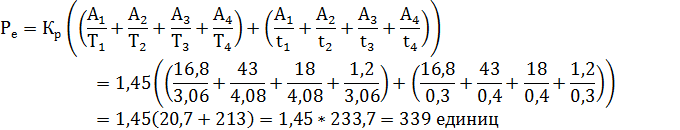 m = mбаз* Кn * Кt * Кu = 3 * 1 * 1,3 * 1 = 4,5 чел/ч
