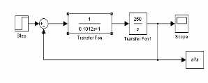 Моделирование переходной характеристики осуществляется в программе MatLab. Структурная схема модели приведена на рис. 6.