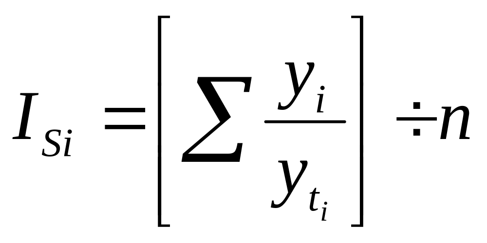 Если ряд динамики не содержит ярко выраженной тенденции в развитии, то изучение сезонности производят с помощью метода постоянной средней. Расчет индексов сезонности в таких рядах осуществляется по следующей формуле: