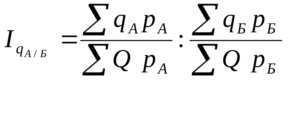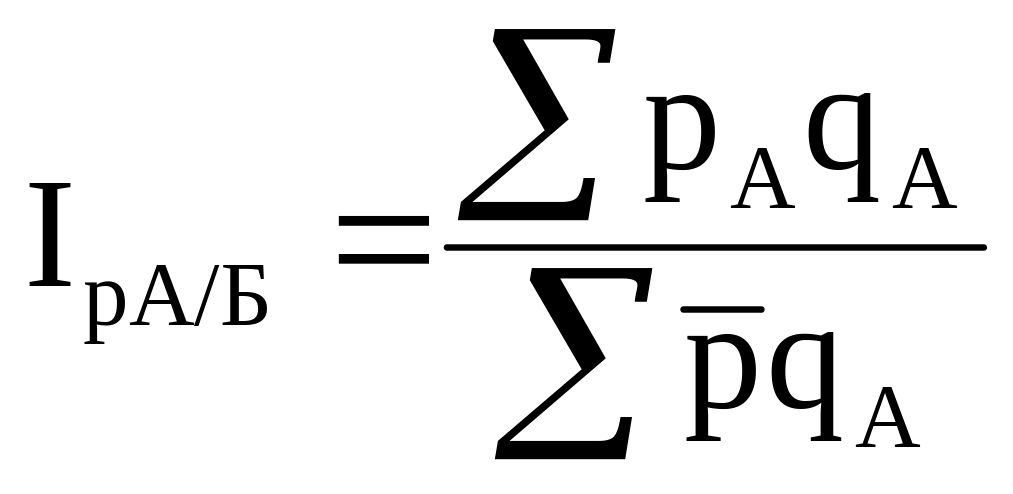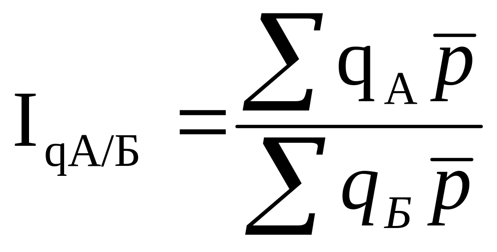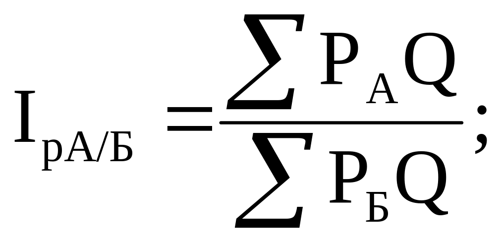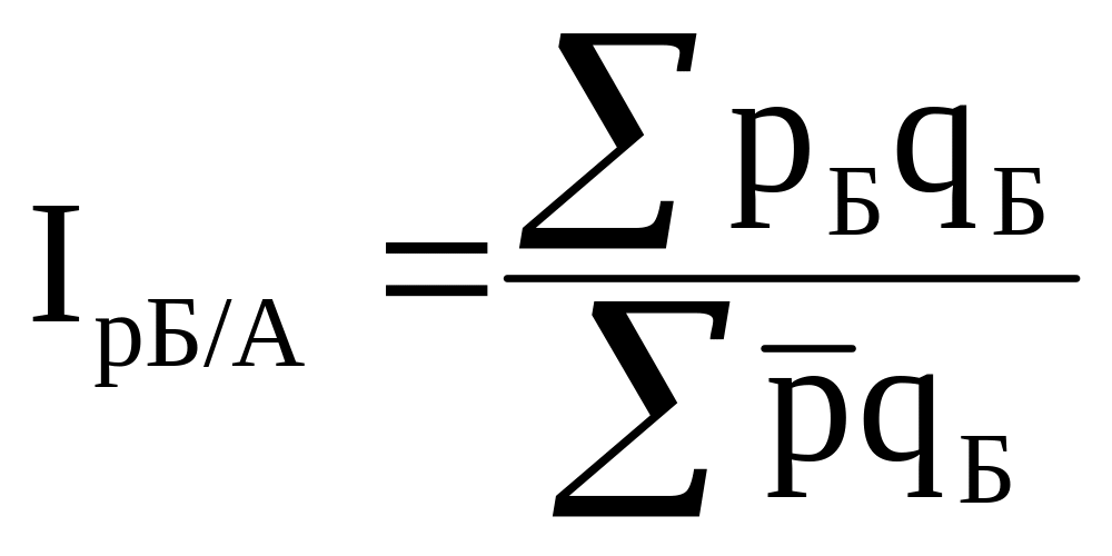 При этом методе формулы для расчета территориальных индексов качественных показателей, например, цены, имеют следующий вид: