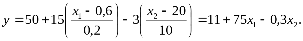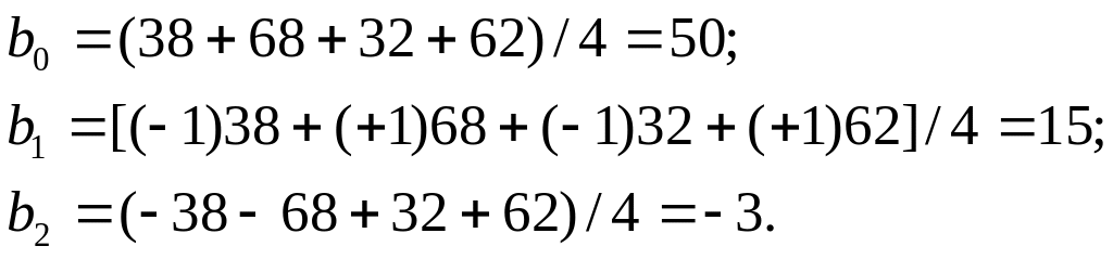 Искомое линейное уравнение поверхности отклика в закодированных переменных будет:
