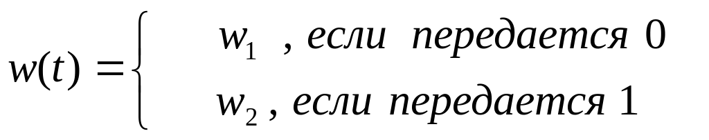 4. Разработать систему кодирования и модель формирования сигнала для частотной модуляции с двумя несущими частотами w1 и w2, соответствующими значению передаваемого бита 0 и 1 соответственно, т.е.