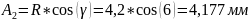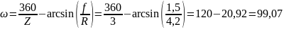 e = R*sin(γ) = 4,2*sin(6) = 0,439 мм;