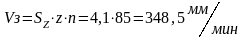 Sz = Sм/Z = 4,1/10 = 0,41 мм/зуб;