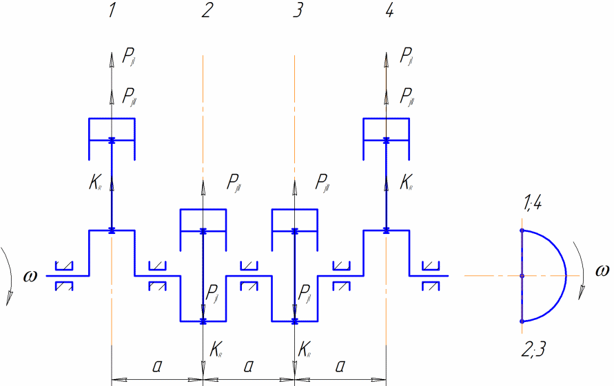 Определим сначала силу инерции второго порядка возникающую на коленчатом валу от одного цилиндра: