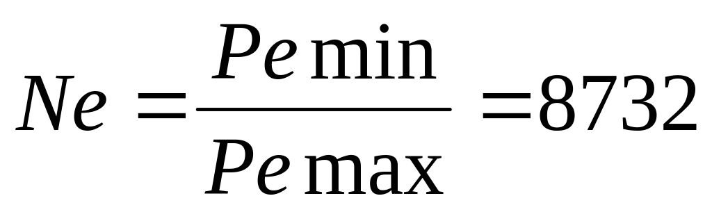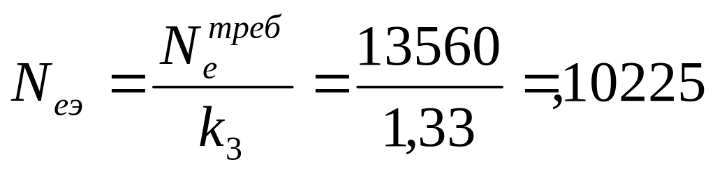 Диаграмма строится в логарифмической системе координат, в осях относительная мощность – относительная частота (отнесение ведётся к параметрам на режиме максимальной длительной мощности), представлена область допустимых расчётных режимов, ограниченная двумя изобарами и двумя изодромами. Изобары соответствуют максимальному 1 – 3 и минимальному 2 – 4 средним эффективным давлениям: Ре1 и Ре2, приведённым в 9 и 10 столбцах таблицы1. Изодромы 1 – 2 и 3 – 4 соответствуют диапазону частот, указанному в столбцах 6 и 7 этой же таблицы. Точка 1 получена пересечением линии максимальной длительной мощности и максимальной изодромы nmax. Максимальная длительная мощность агрегата ДВС может быть определена в результате умножения мощности цилиндра на число цилиндров в составе агрегата: