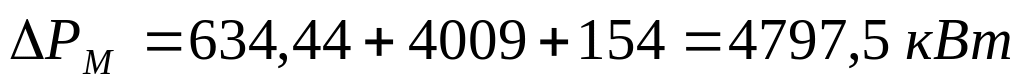 Суммарные потери мощности в режиме максимальных нагрузок составят