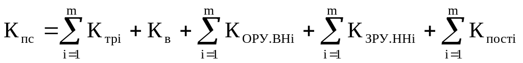 Суммарные капиталовложения на сооружение подстанций проектируемой сети