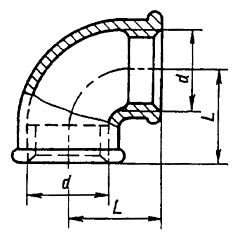 Размеры труб и фитингов определяются условным проходом соединяемых труб, величина которого практически равна внутреннему диаметру трубы Dy.