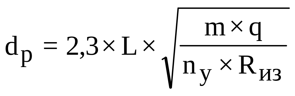 где a – полупролет выработки по кровле вчерне, м; m - коэффициент перегрузки, ед. (m=1,5 - для стволов, их сопряжений, околоствольных дворов и камер, m=1,2 - для остальных выработок, m=1,5÷2 - соответственно в сложных горно-геологических условиях); L - расстояние между смежными крепежными рамами, м; Rиз – расчетное сопротивление древесины изгибу, кПа [2, табл. 2]; nv - коэффициент условий работы деревянной крепи, [2, табл. 3].