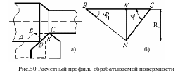 Из рис.50 расчетную (геометрическую) высоту микронеровностей (высота NK в треугольнике BCK, который определяет остаточную площадь срезаемого слоя) можно найти как: