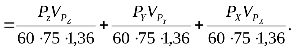 Мощность затрачиваемая на процесс резания (эффективная мощность), рассчитывается как сумма мощностей на преодоление каждой составляющей силы резания Рz, Py и Рх. Учитывая, что мощность есть работа в единицу времени, необходимо каждую составляющую умножить на скорость резания в направлении действия данной силы, т.е.