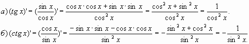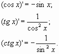 10. Таблица производных элементарных функций. Вывод производных для sin x, tg x, e^x.