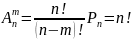 Заметим, что размещение из n элементов по n элементам представляет собой перестановку, т.е.: