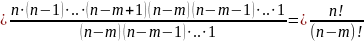 Доказательство. Размещение M элементов множества Mможно представить, как заполнение некоторых m позиций элементами множества M. При этом первую позицию можно заполнить nспособами, вторую позицию (n-1) способами. Последнюю позицию можно заполнить (n-m+1) способами.