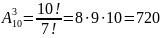 Пример. Из 10 книг производным образом берутся 3 книги и ставятся на полку. Сколько существует способов такой расстановки книг.