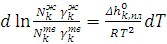 Рассмотрим, как изменение температуры при постоянном давлении влияет на изменение состава равновесных фаз. Для этого выразим в уравнении (6.3) активности через мольные доли