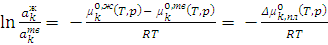 µkж = µk 0,ж(T,p) + RTlnakж; (6.1)