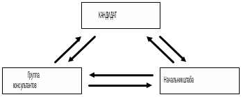 Необходимость соблюдения жесткой процедуры выработки и принятия решений внутри этого коллегиального органа, т.е. Группа консультантов, Кандидат, Начальник штаба вынуждены всегда договариваться.