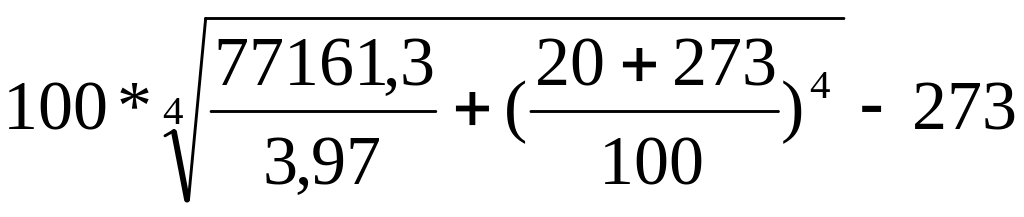tкл4к = 100·4√30559/5,01 + ((1220+273)/100)4 - 273 = 1264°С