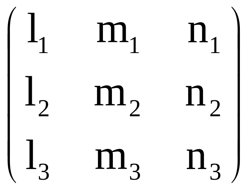 Пусть произвольные оси x, y, z наклонены к главным осям 1, 2, 3 под углами, косинусы которых образуют матрицу (L):