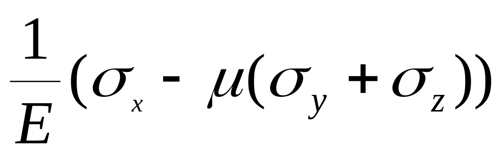 Следовательно, в произвольных осях линейные деформации x, y и z связаны с нормальными напряжениями x, y и z такими же зависимостями, какими главные деформации связаны с главными напряжениями (5).