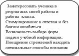 - в выборе учителем, в соответствии с содержанием учебного материала, организационных схем, методов, педагогических технологий и приёмов обучения.