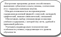 Проектирование образовательного процесса личностно-ориентированного обучения должно учитывать следующие требования: