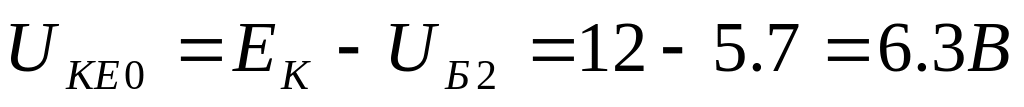 Розрахуємо постійні напруги на базах. Напруга на базі VT2 буде дорівнювати: