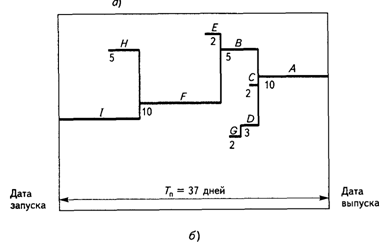 Технологический цикл сложного процесса. Организация сложного технологического процесса во времени определяется его цикловым графиком. Цикловой график строится на основе предварительного расчета длительности технологического цикла каждого из простых процессов, составляющих данный сложный процесс. Цикловой график определяет последовательность и продолжительность выполнения всех простых процессов, а также их взаимосвязи в процессе выполнения. Продолжительность каждого простого процесса в составе сложного вычисляется так же, как для простых процессов. Общая длительность технологического цикла сложного процесса определяется по наиболее длительной цепочке простых процессов.