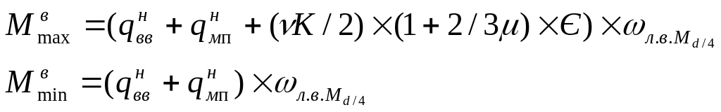 Максимальний та мінімальний згинальні моменти при розрахунках