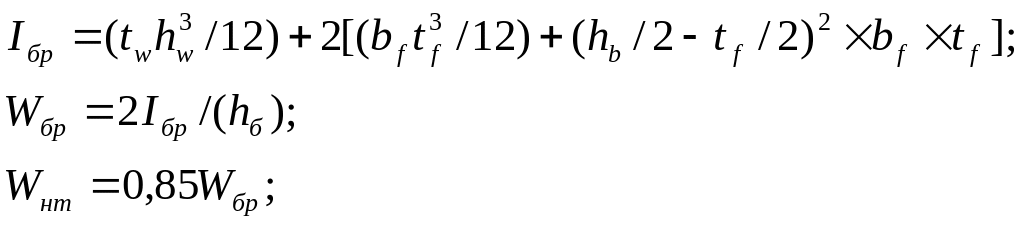 Знаходимо величину моменту інерції брутто Iбр, момент опору брутто Wбр та момент опору нетто Wнт перерізу балки: