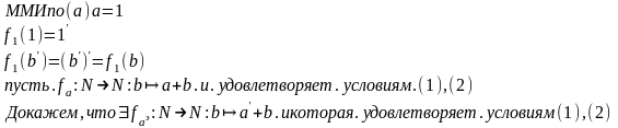 ММИ по (b) а=1 , а+1=1+а - доказано. Пусть