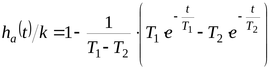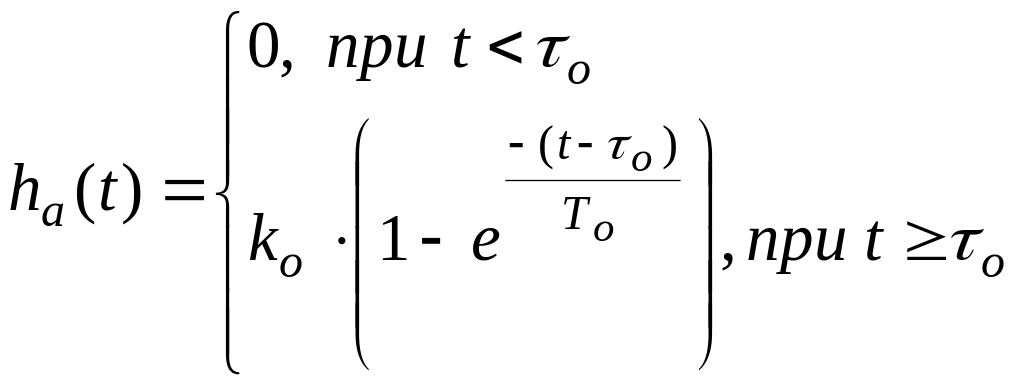 Здесь k = hУСТ, а переходная характеристика модели без учета запаздывания определяется формулой: