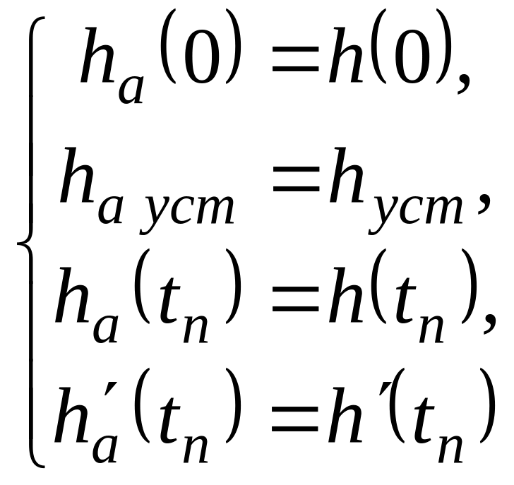 3) Критерием приближения является требование совпадения аппроксимируемой h(t) и аппроксимирующей hА(t) характеристик в точках t = 0, t = и в точке перегиба tП, определяемой из условия: