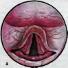 Клиническаякартина.Больныежалуютсянаоструюбольприглотании,особенноприрасположенииинфильтратавобластинадгортанникаивобластичерпаловидныххрящей.Приинфильтративно-гнойнойформеларингитавозможнонарушениедыхательнойфункциигортанивплотьдоасфиксии.Температурателавысокая.Приобследованиивыявляютвоспалительнуюреакциюрегиональныхлимфатическихузлов.ПриларингоскопииопределЯетсягиперемияиинфильтрацияслизистойоболочкигортани,значительноеувеличениевобъемепораженногаотдела,гдемогутбытьвидныучасткижелтогопросвечивания(гноя)илинекроза.Подвижностьотдельныхэлементовгортанибываетрезкоограниченной(рис.8.2).Сужениепросветагортанизависитотобъемаилокализацииприпухлости.